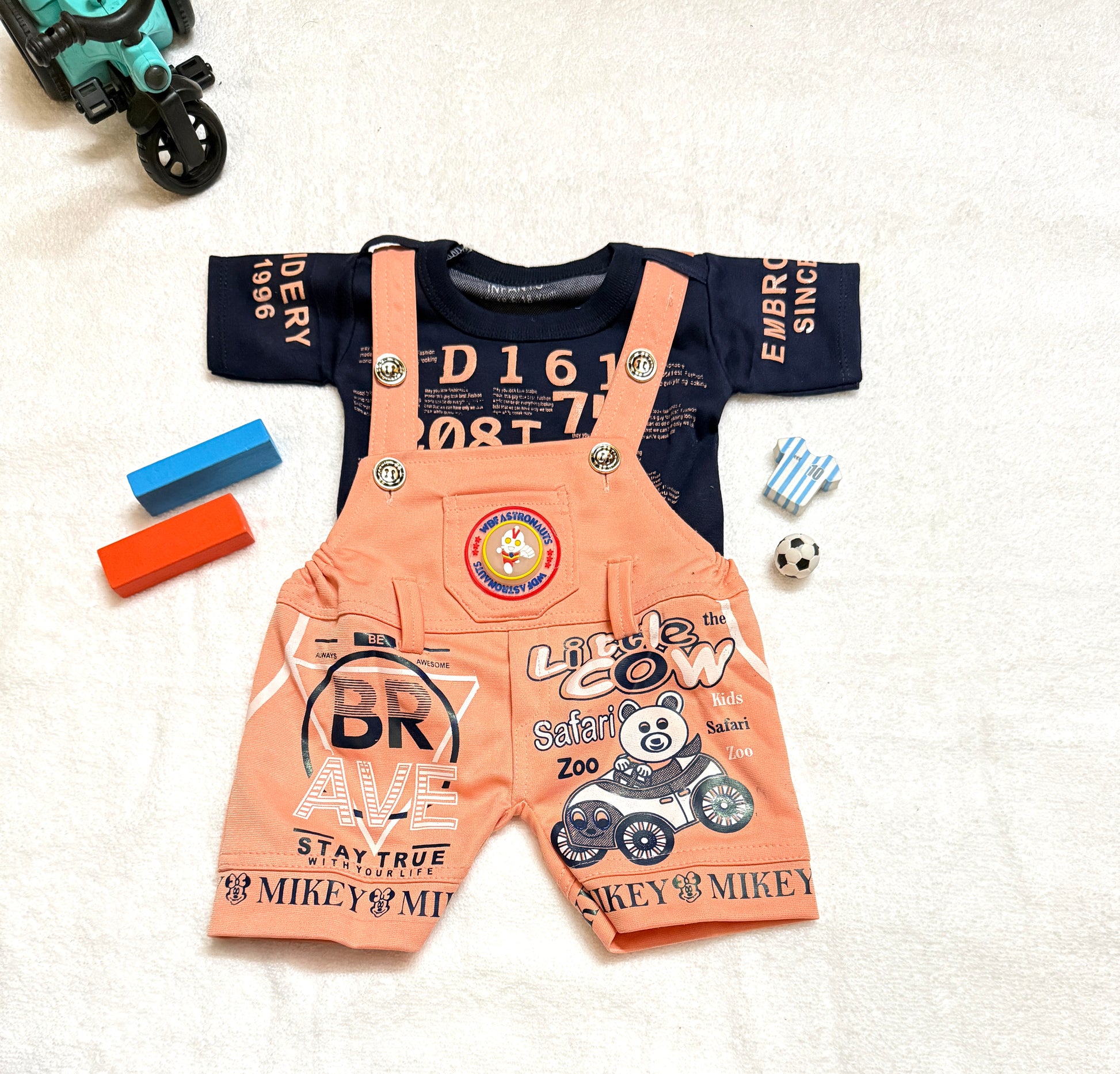 Includes a sleeveless safari dungaree and a matching soft inner T-shirt.