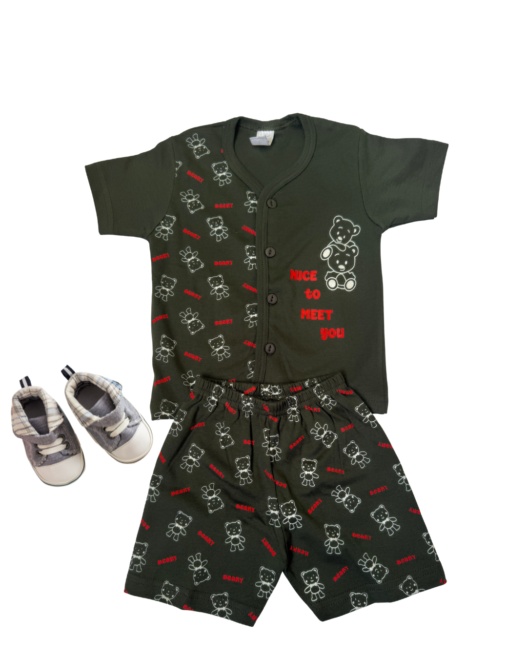 Beary BLACK Cotton Co-ord Set for Babies (6-12Months) – Unisex
