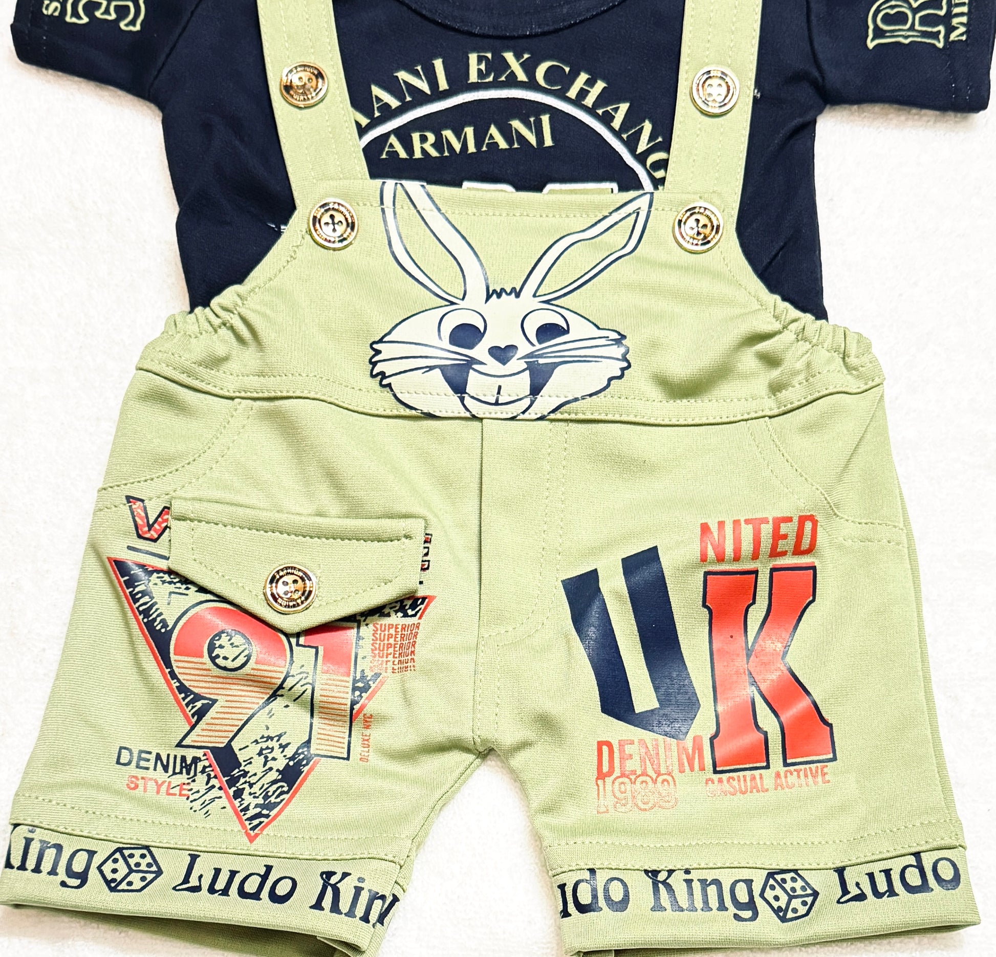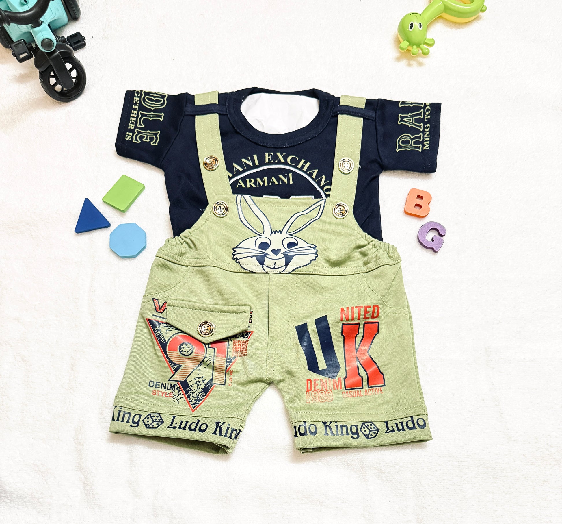 "Cute Bunny Print Baby Boy/Girl Dungaree Shorts & T-Shirt Set - Ludo King & UK Graphic Design"