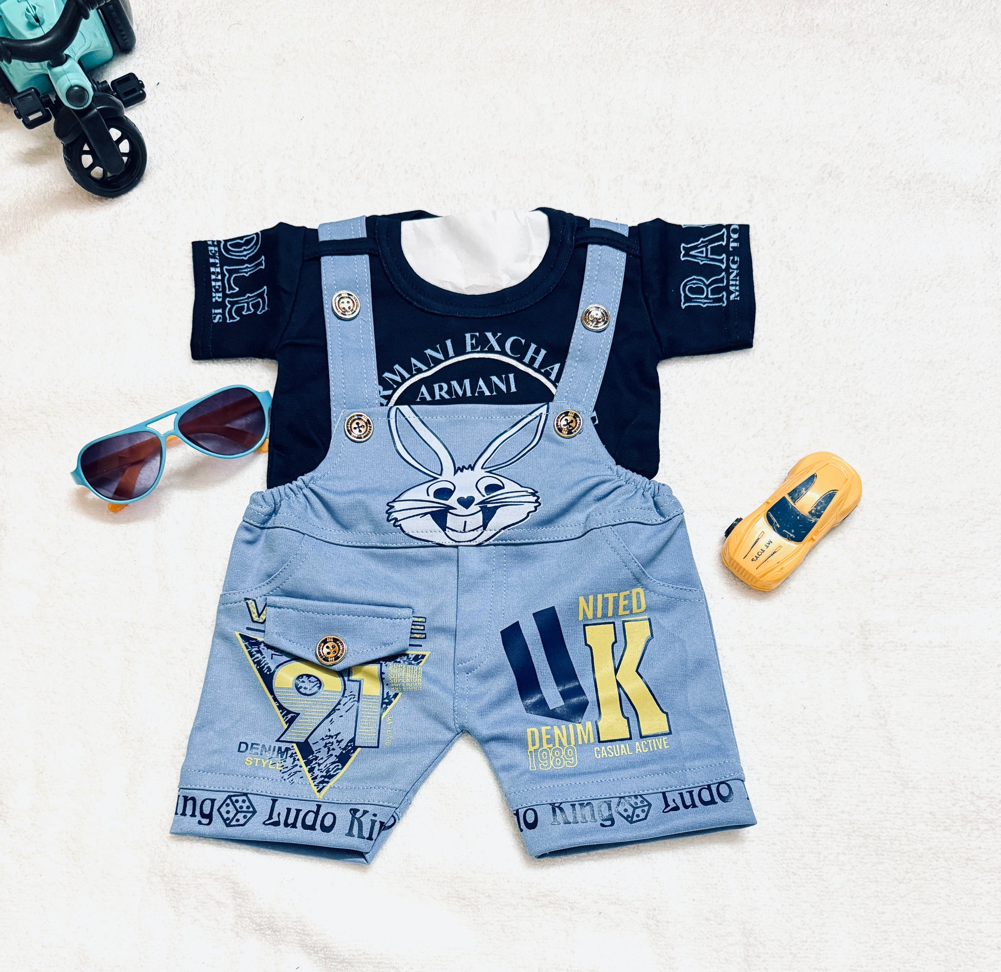 🎨 Color Combination: Available In 3 Colors - |navy blue t-shirt + 1 light green dungaree shorts| , |navy blue t-shirt + 1 light red dungaree shorts| , |1 navy blue t-shirt + 1 light blue dungaree shorts|