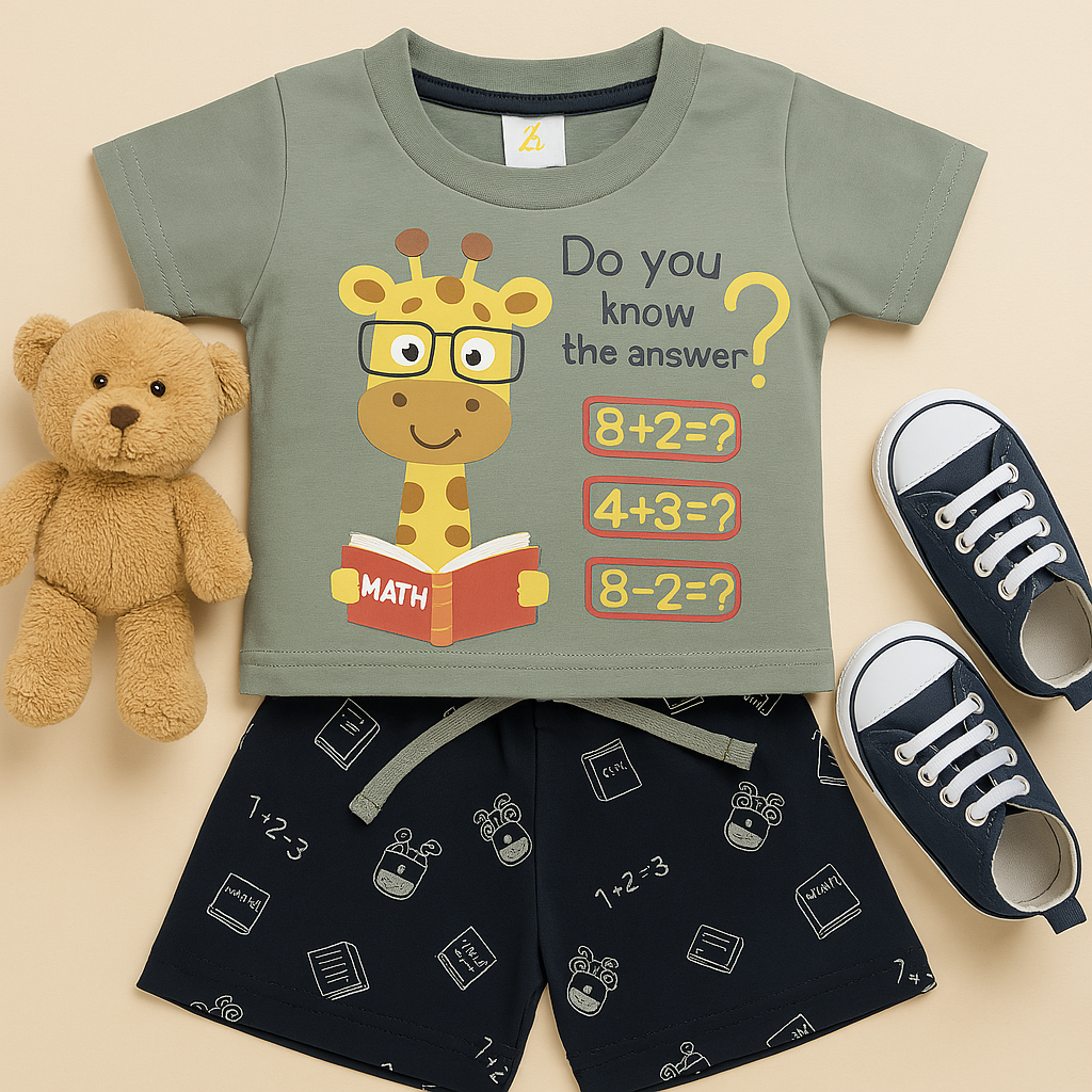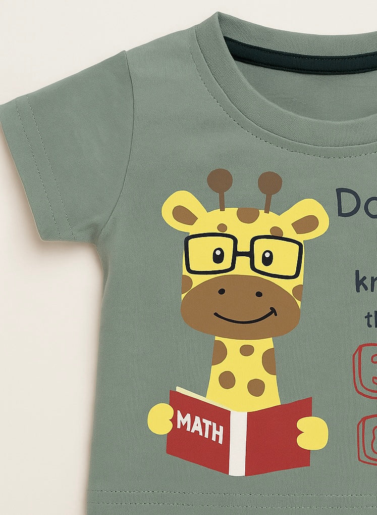 Top Color: Olive green with educational giraffe print