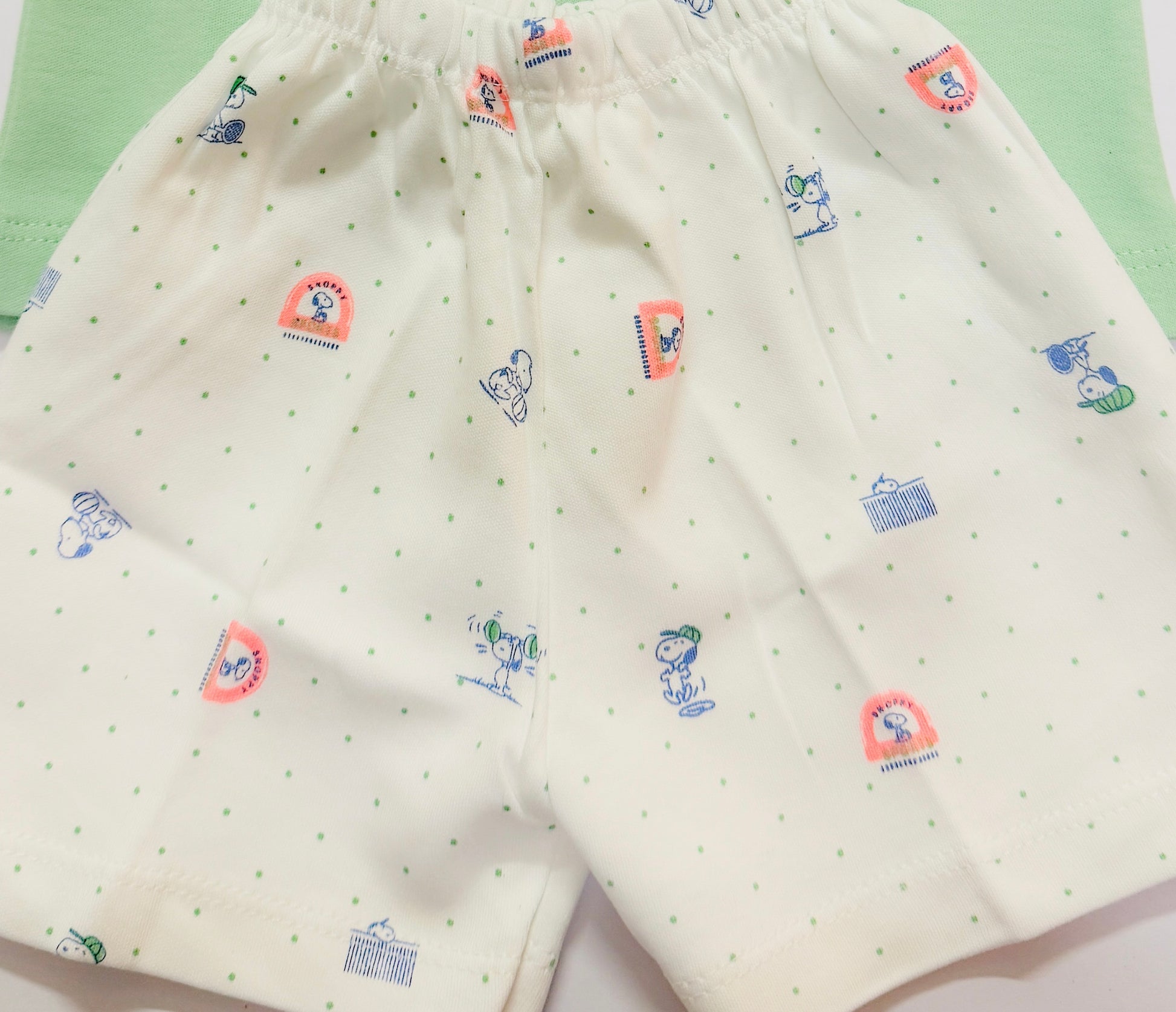 Bottom Color: Cream White with Green Polka Dots & Animal Motifs