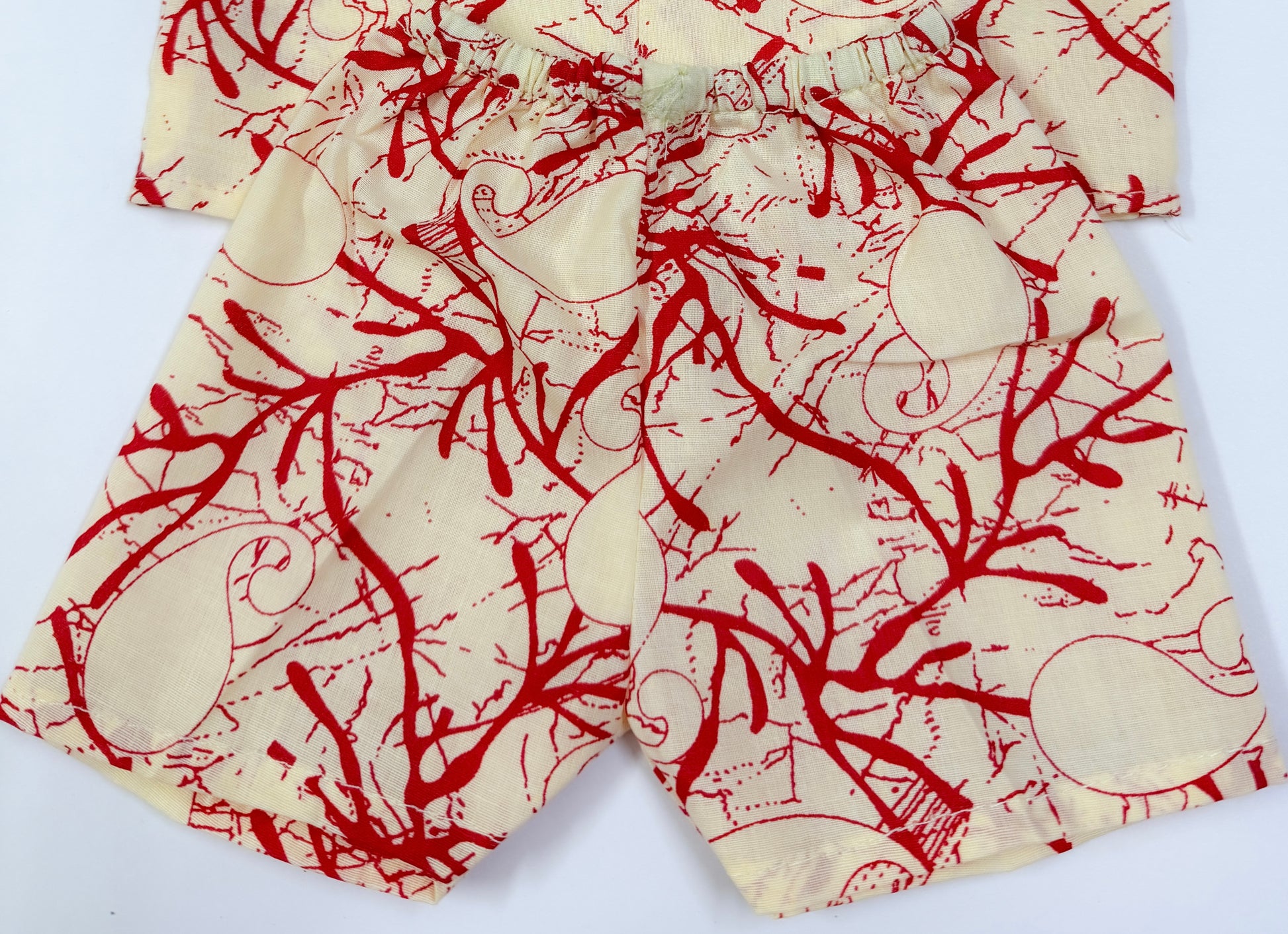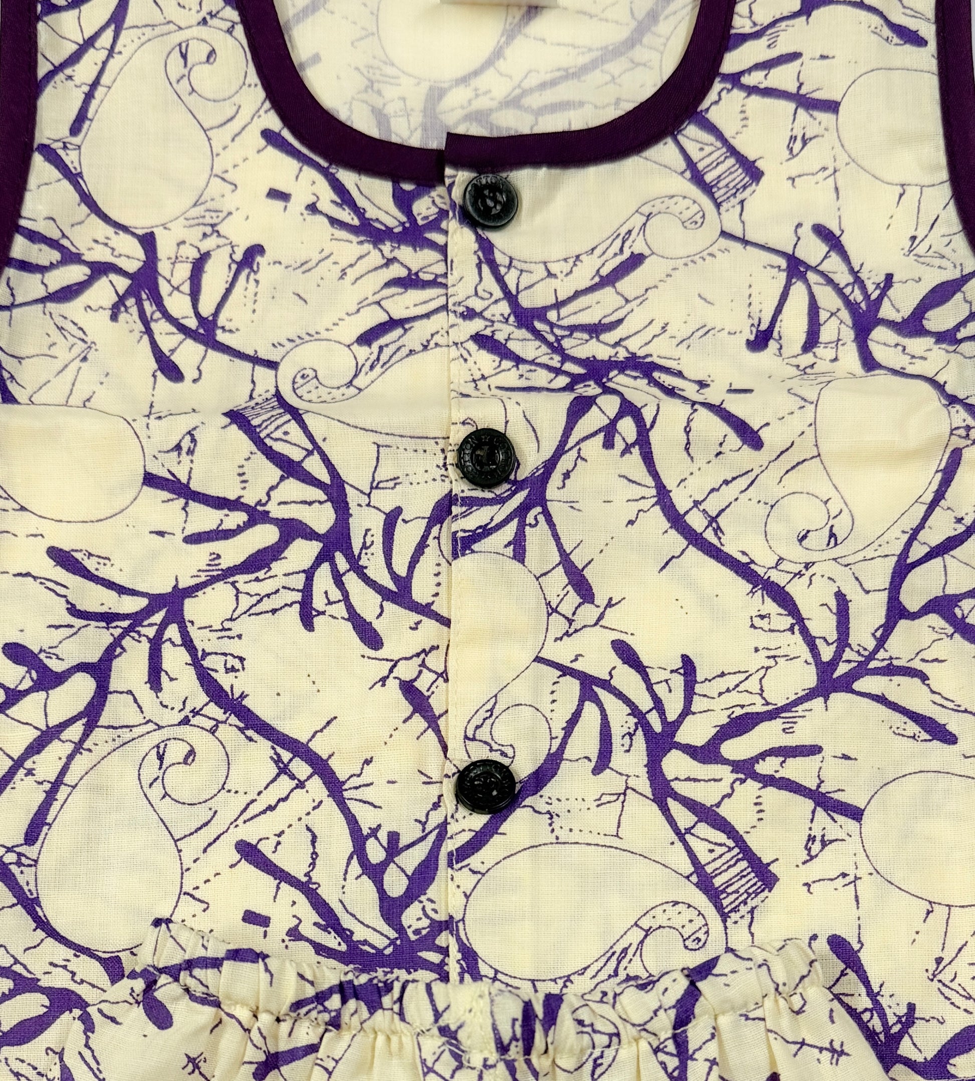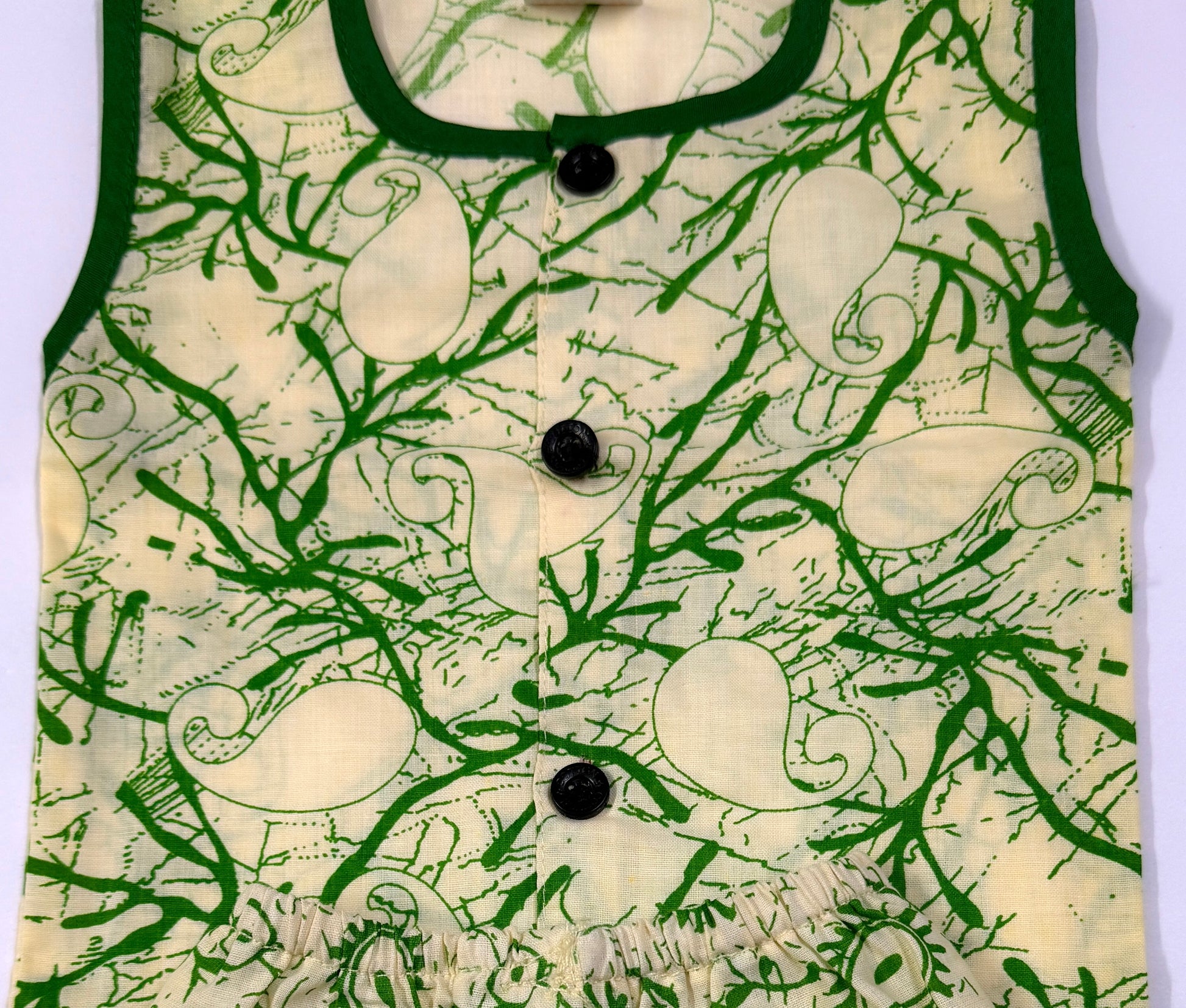 Keep your little one cool and comfy with this vibrant Combo Pack of 3 Baby Vest & Shorts Sets. Each set features a playful, abstract print with traditional Indian paisley and vine motifs in eye-catching red, purple, and green color themes. Made from soft, breathable cotton, these sleeveless vests with front button closures pair perfectly with matching elastic-waist shorts — ideal for summer days, nap time, or casual play.