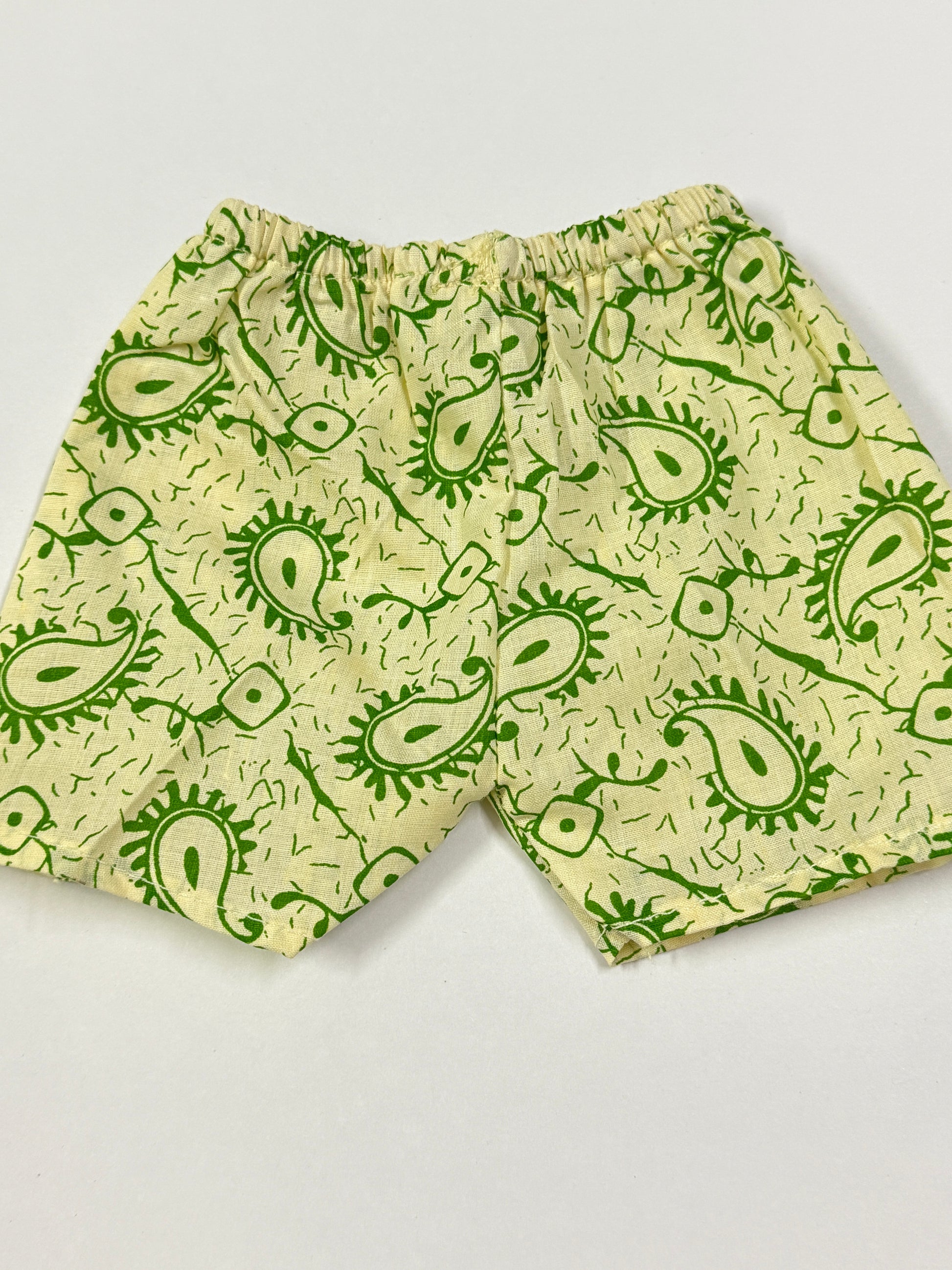 🟢 Green Set: Abstract paisley & vine print with deep green piping